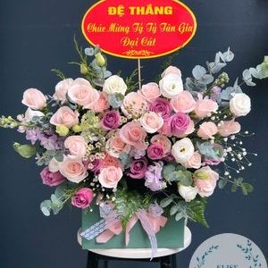 Hộp/ lẵng hoa màu tím nhập khẩu chúc mừng kỷ niệm ngày cưới ông bà, bố mẹ – shop hoa tươi Hà Nội